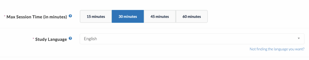 Choose Session Duration and Language