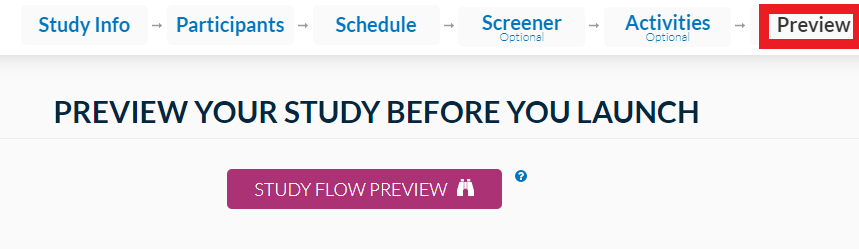 You may review your study using the Preview option if you wish. Click “Study Flow Preview” to ensure everything looks good.