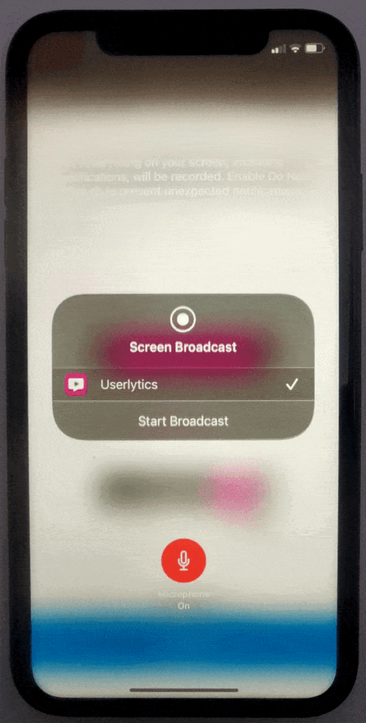 After clicking on the “Start” button, you will have to enable screen recording on your phone, as well as audio recording if the specific test you are taking requires you to speak aloud. A pop-up will appear that says “Screen Broadcast.” If the test you are taking requires you to speak aloud, make sure the microphone icon appears in red with the words “Microphone On” beneath it. Click on the button that says “Start Broadcast” to continue. Once the Screen Broadcast begins, you can click anywhere outside of the pop-up to close it.